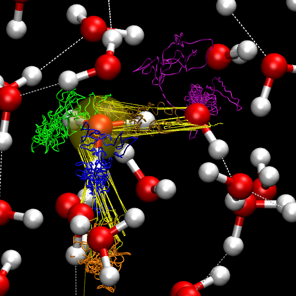 comparing the Grotthuss-diffusion of a hydronium ion (yellow) to