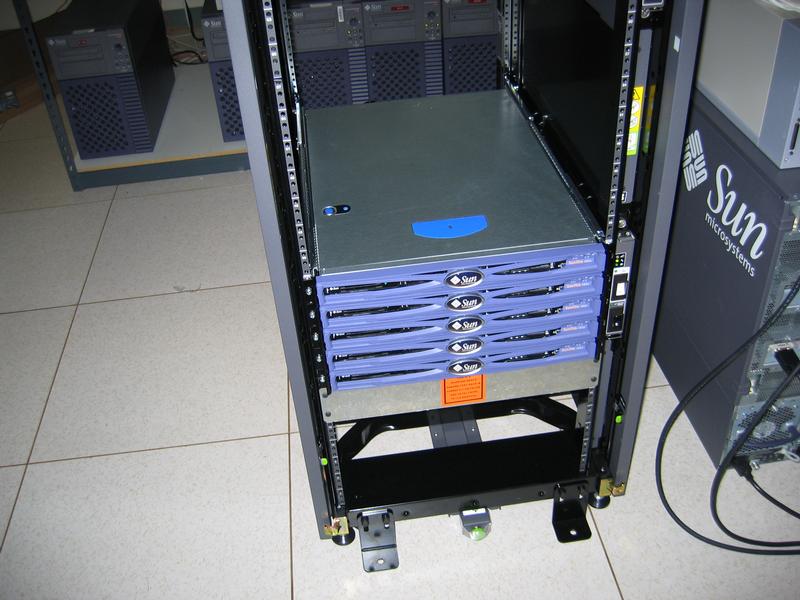 As the network was out when we came in on the morning of the 12th of May, we decided that our best course of action was manual labor. And so we mounted a full 24 systems in the main rack, plus two more racks to hold the machines we were working on before.