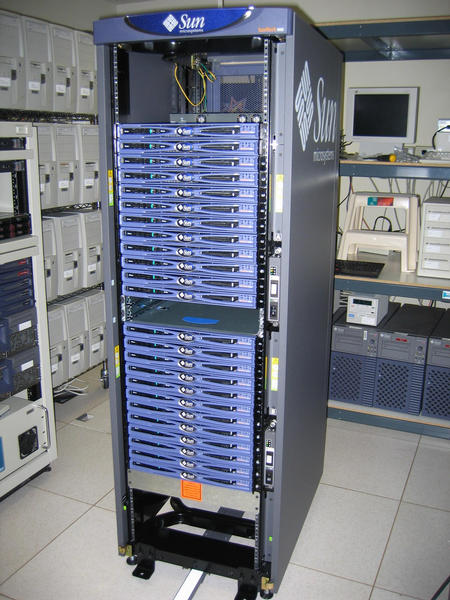 As the network was out when we came in on the morning of the 12th of May, we decided that our best course of action was manual labor. And so we mounted a full 24 systems in the main rack, plus two more racks to hold the machines we were working on before.