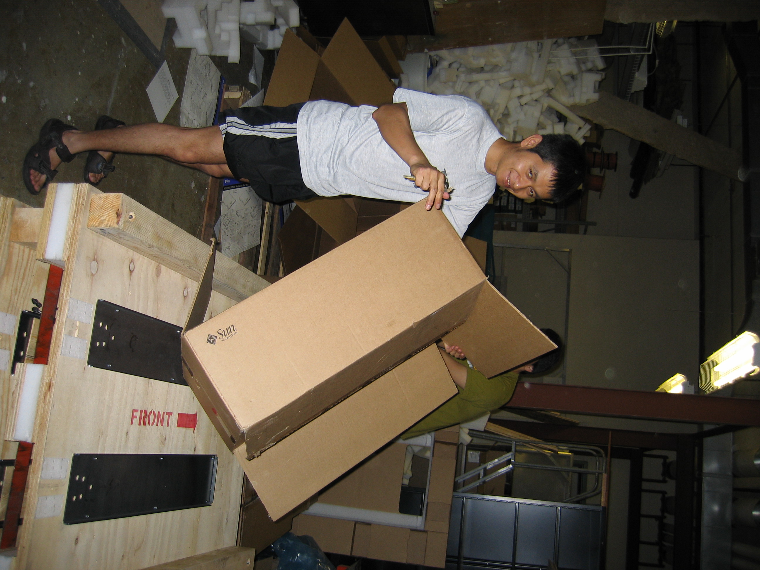 While we were out of space to continue working on clusters up in our primary work space after Day Six or so, we still wanted to get the last cluster ready to go ASAP. To help with this, we called in the help of several grad students (Eduardo, Amy, and Zhu) to assemble the cluster in the basement.