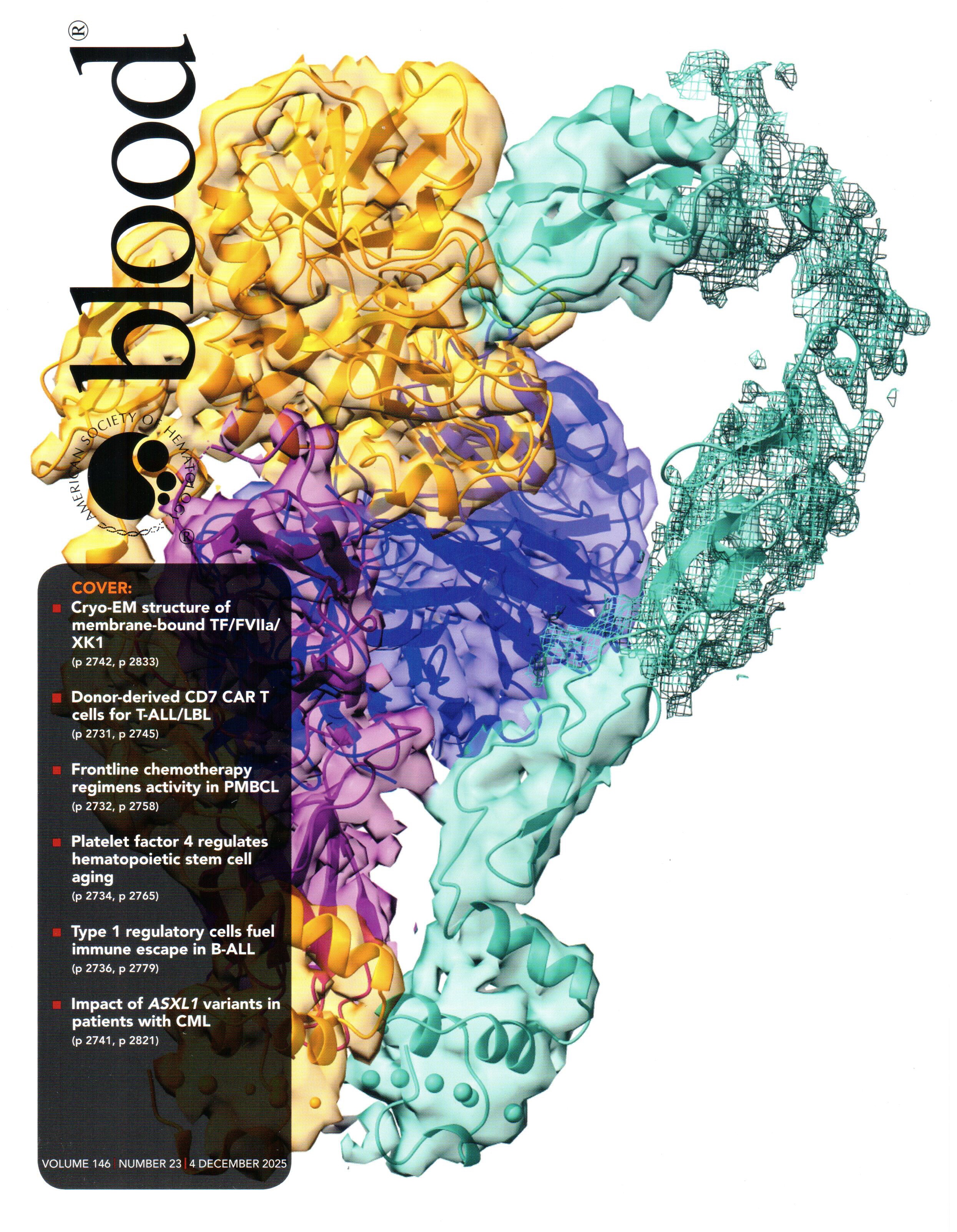 The activation of coagulation factor X (FX) is arguably the most important step in the formation of blood clots. When tissue is damaged by external injury, FX activation is usually initiated by the formation of a complex between FVIIa and tissue factor, which binds and activates FX after anchoring into cellular membranes rich in anionic lipids and calcium. This key step involves the formation of a tripartite complex on the membrane, which was earlier modeled by Resource researchers and published in Blood Advances. In collaboration with the Morrissey lab at the University of Michigan, the previous model is now confirmed by a new, and first, cryo-EM structure of the tripartite complex on the membrane, a study reported as a cover story in Blood.