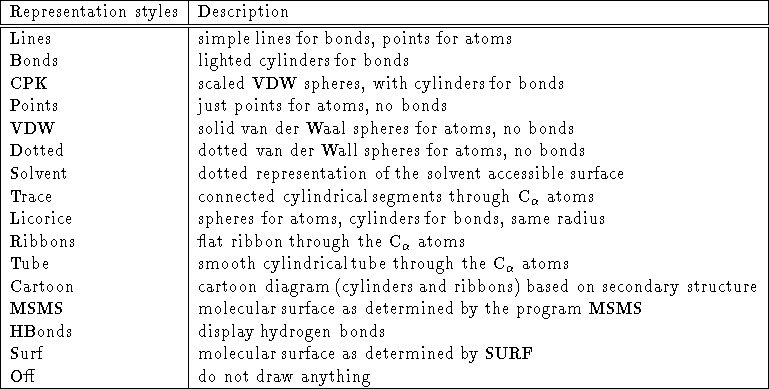 Table 5.1: Molecular view representation styles.