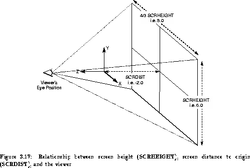 Figure 3.17 describes the relationship between the screen height, the screen distance, and the world coordinate space.