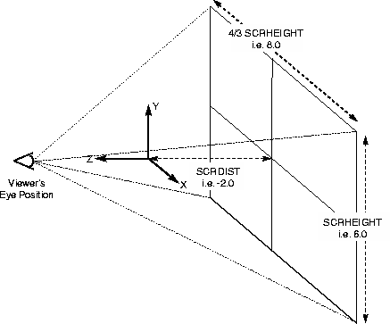 (SCRHEIGHT), screen distance to origin (SCRDIST), and the viewer